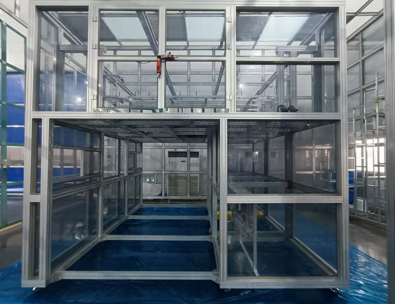 擠壓車間:擠壓生產線 6 條,分別是700噸擠壓生產線1條,1000噸擠壓生產線2條,1450噸擠壓生產線1條, 1850噸擠壓生產線1條,3600噸擠壓生產線1條,擠壓型材最大外接圓可達350mm-400mm, 能生產各種6系鋁合金型材,和不同的時效狀態,各條生產線配備相應的鋁棒爐,模具爐,擠壓機,在線淬火系統,全自動牽引機,冷床,拉直機,定尺鋸等。擠壓車間配備2臺時效爐9框和18框各1臺,滿足不同時效狀態的要求。2臺8槍噴砂機,可滿足各種鋁材表面噴砂處理的需要。